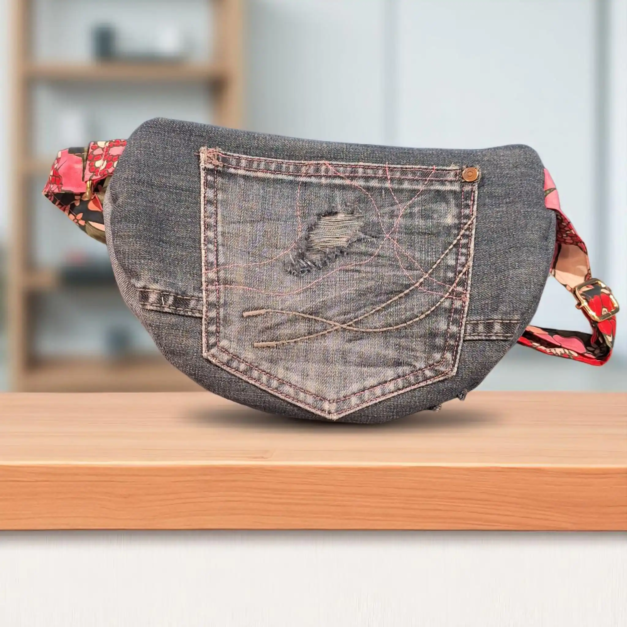 Une banane up cyclée aux couleurs estivales et idéale pour ranger portable et clés, parfaite pour un festival !