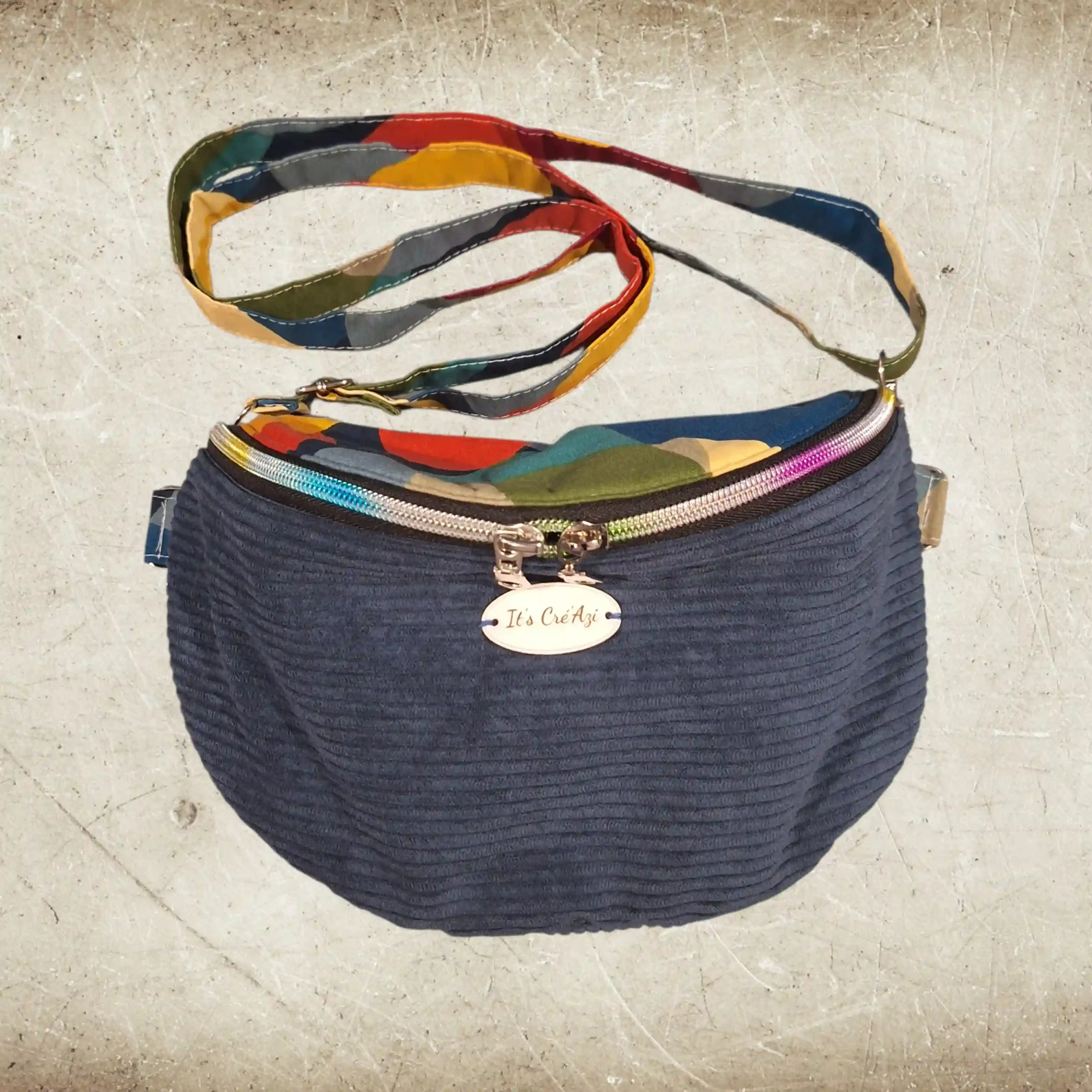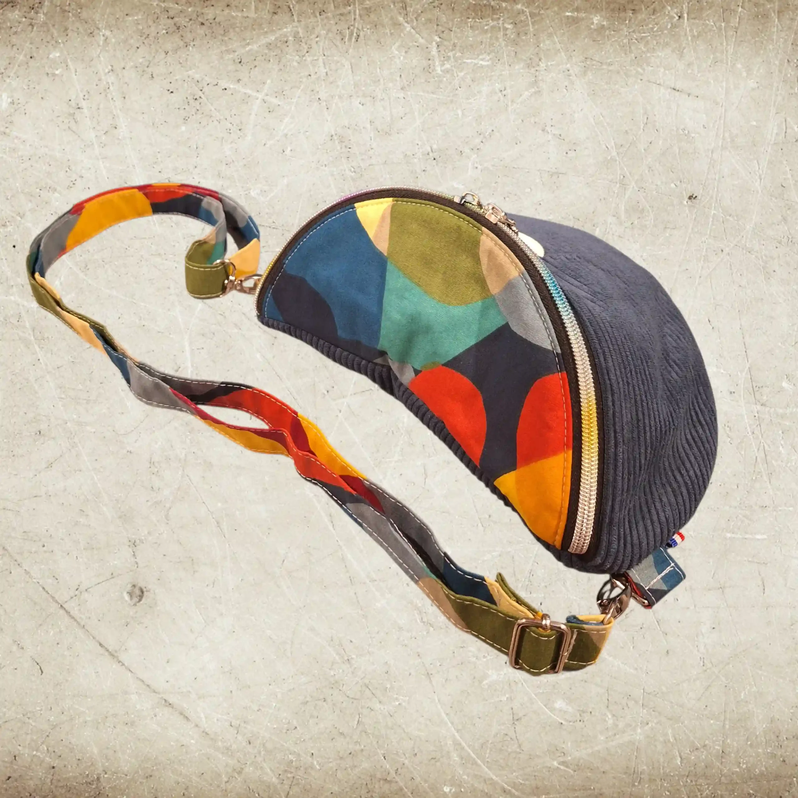 LA BANANE est un sac banane en velours côtelé, fait main, pratique et confortable.