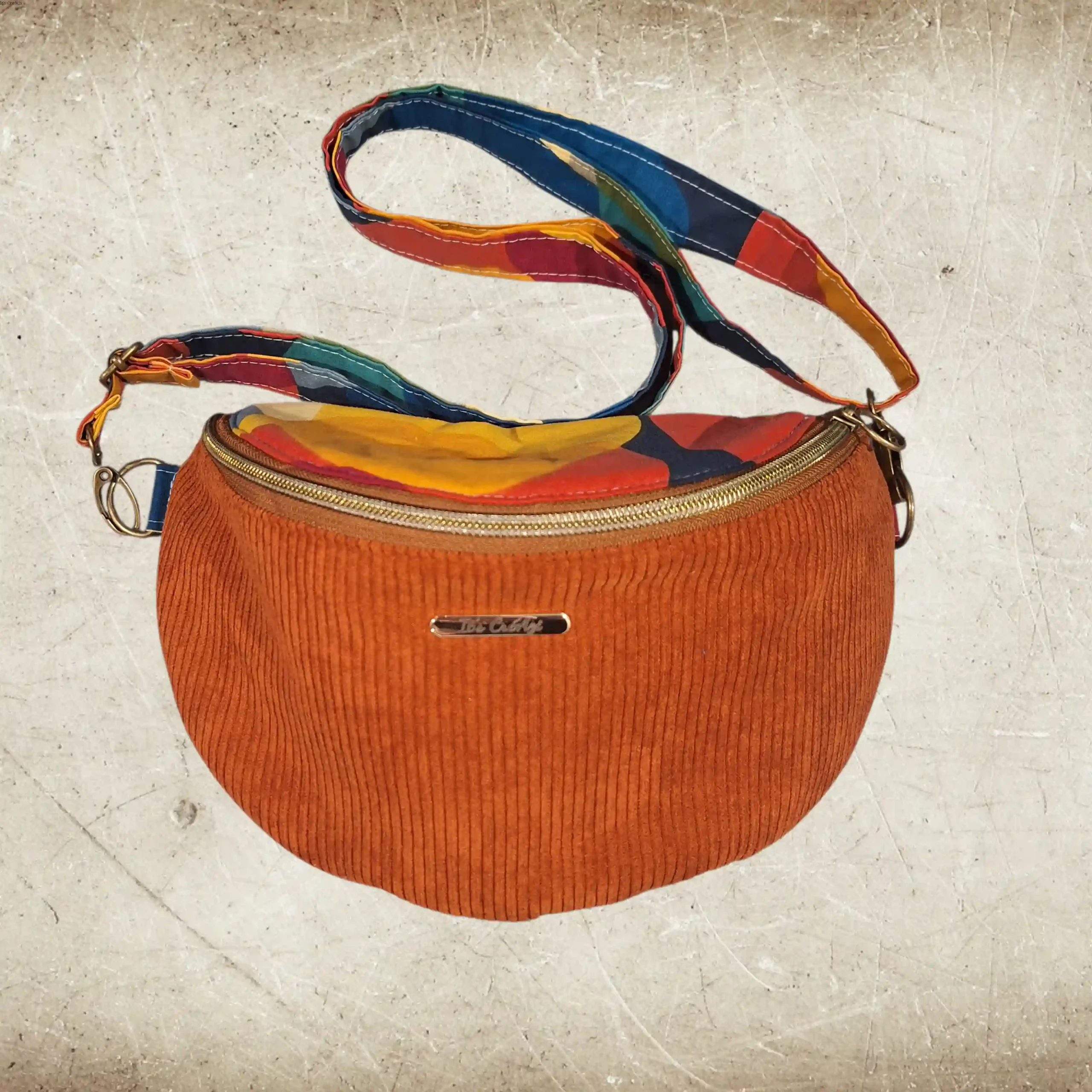 LA BANANE est un sac banane en velours côtelé, fait main, pratique et confortable.