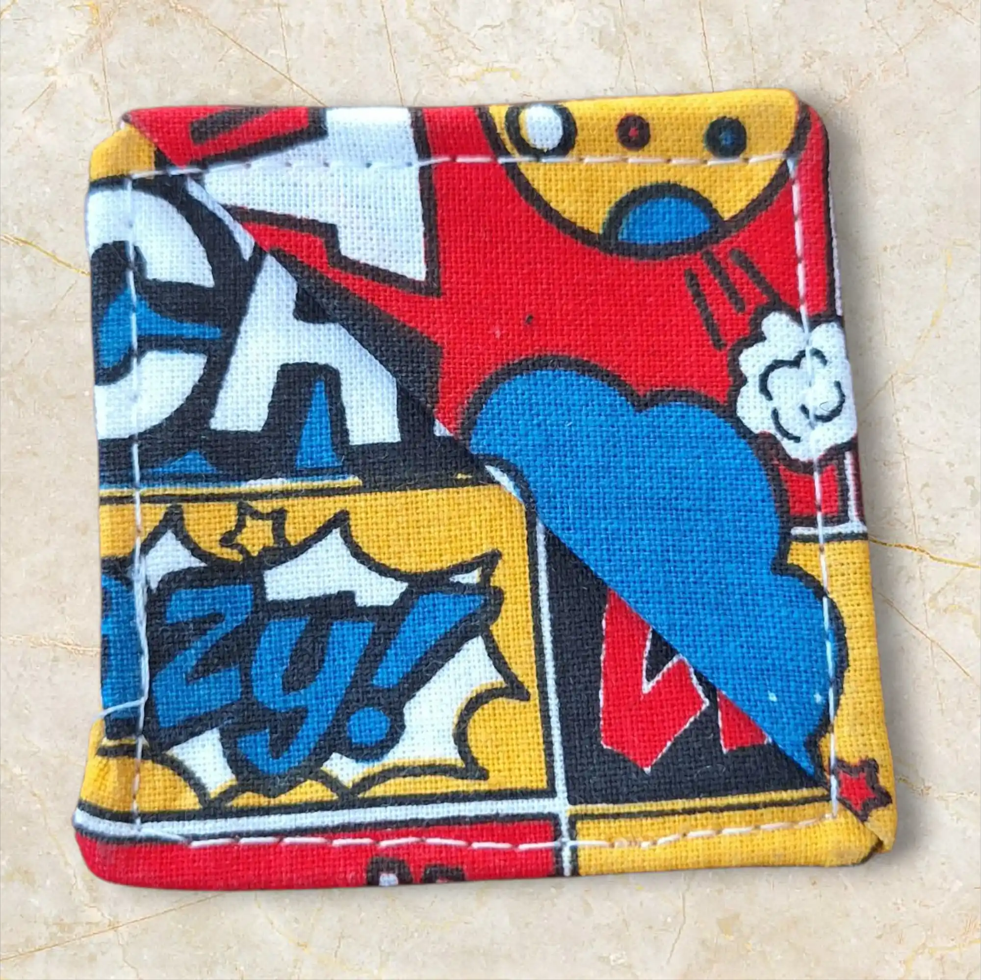 Marque-page original en tissu artisanal. Design original Comics, solide et compact, idéal pour livres et lectures nomades.