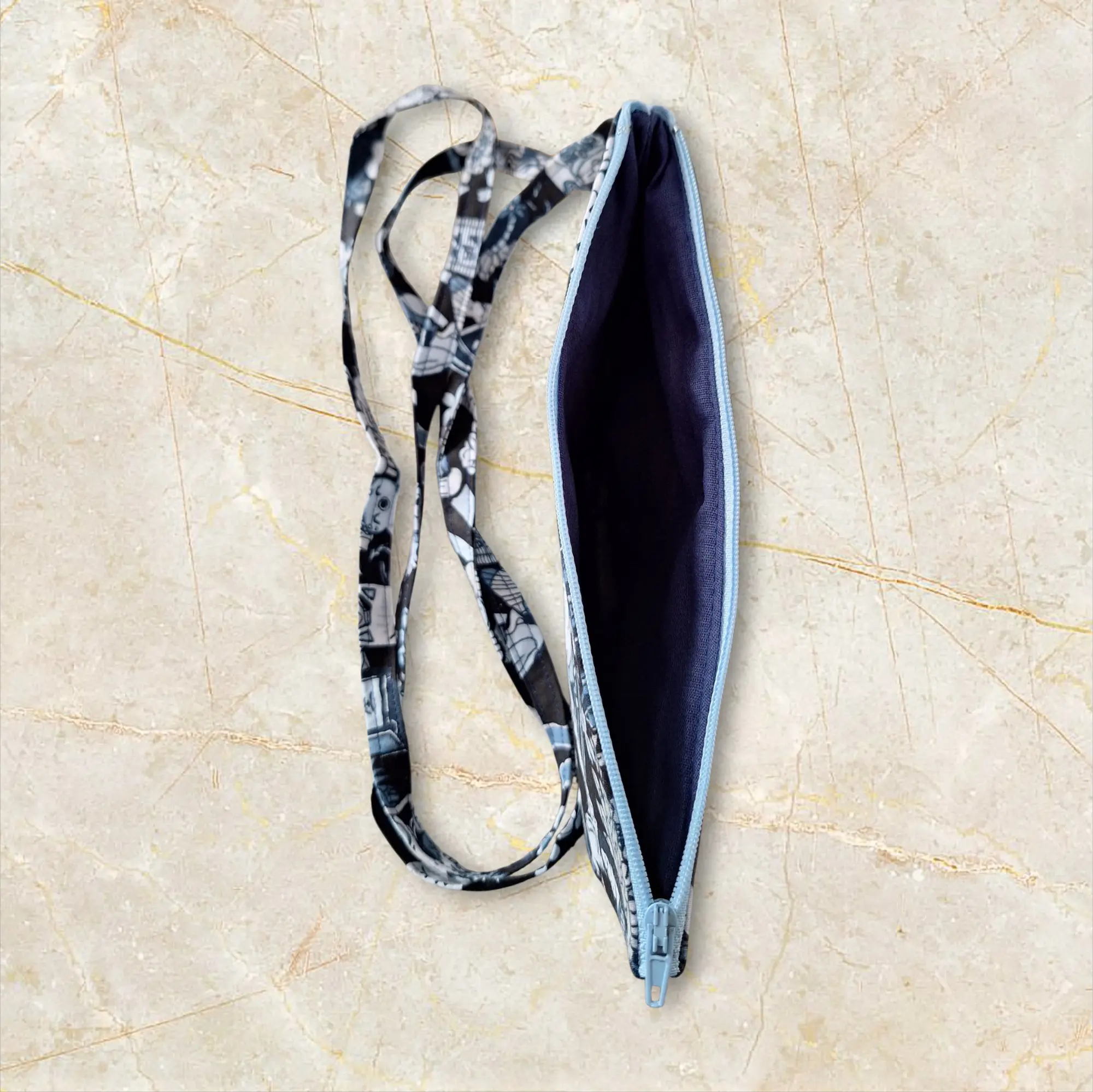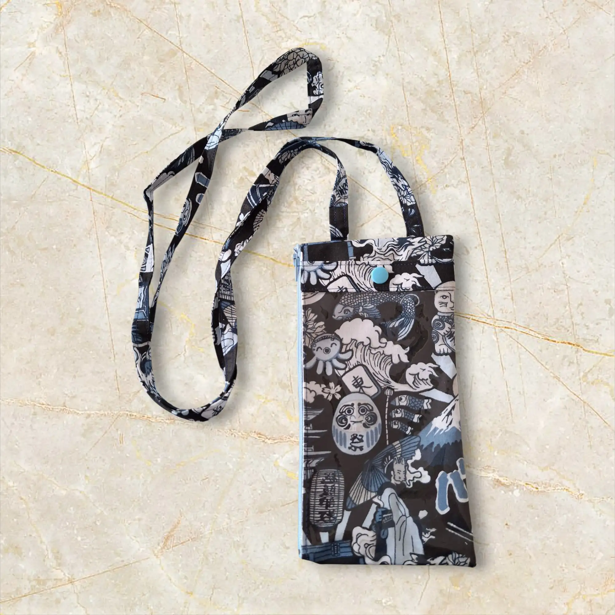 Pochette Béatrice artisanale en tissu, compacte et pratique, motifs manga.