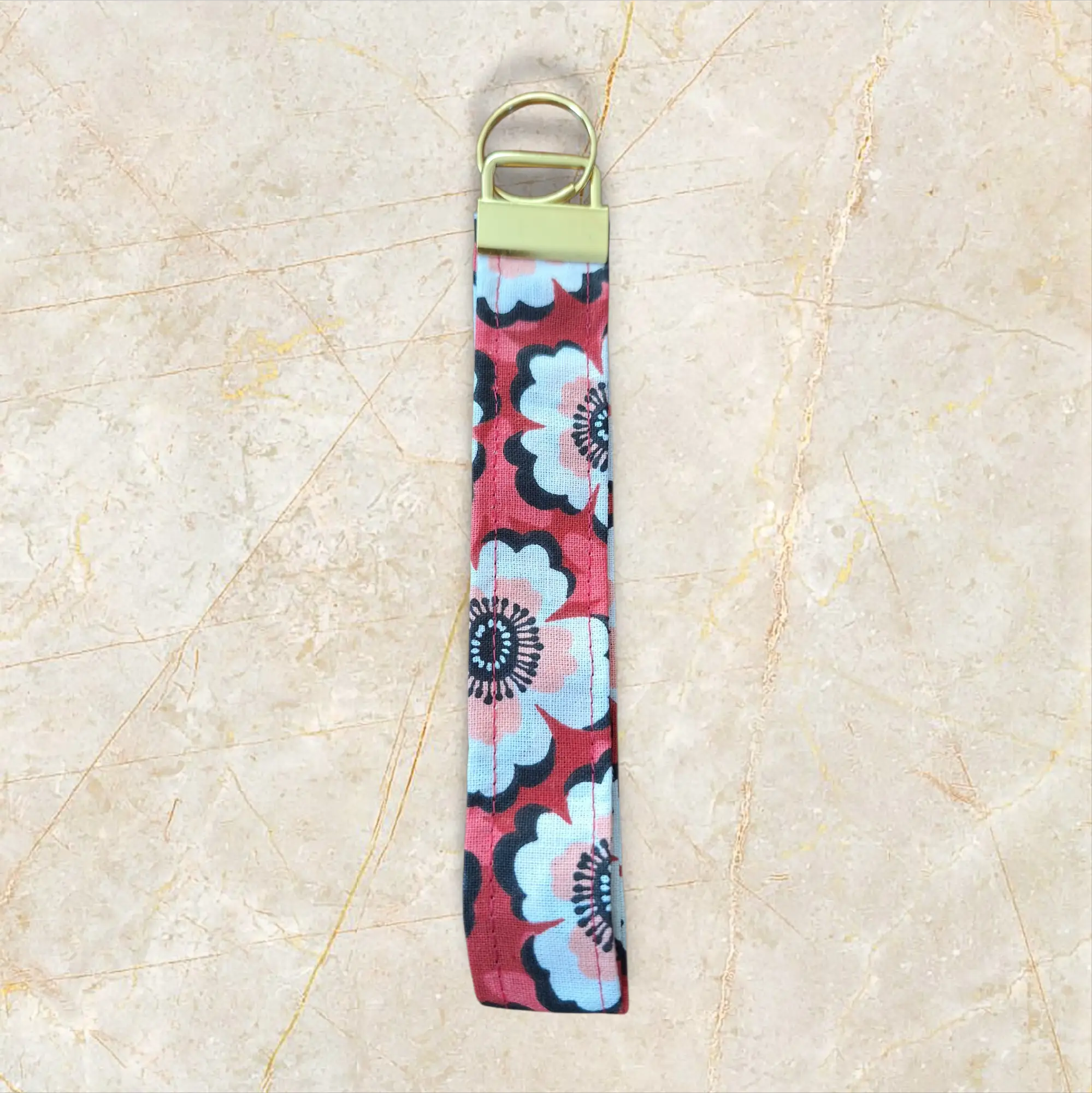 Porte-clé en tissu – Fleuri rouge