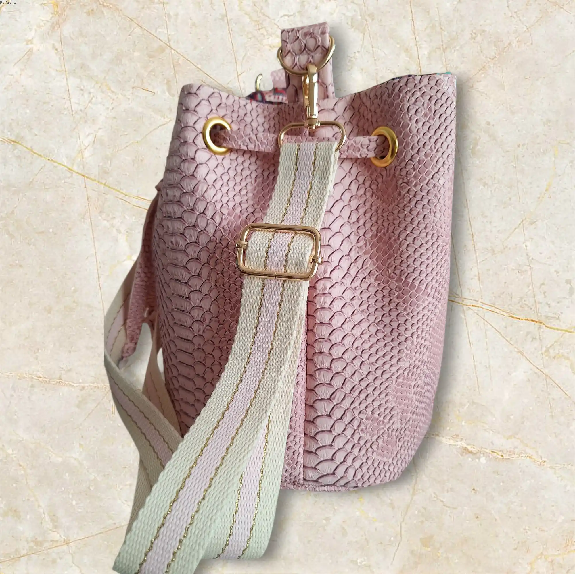 Confectionnés à la main en simili cuir Komodo à effet croco, ils allient style et praticité avec leur forme seau à base ronde et leur joli volume intérieur.